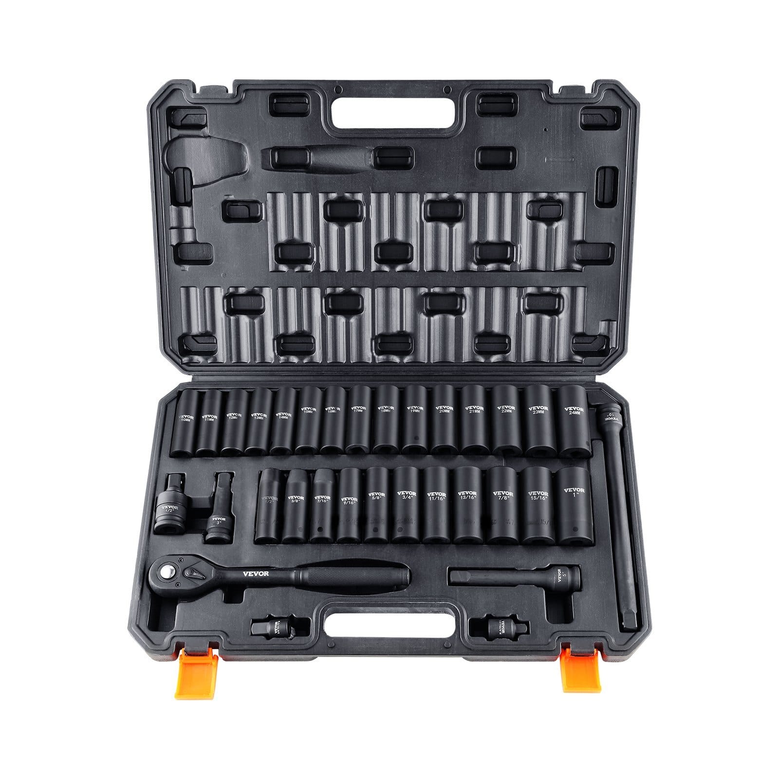 Impact Sockets Set: 33 Pieces,Item Model Number:SS21387833,Material: Cr-V Alloy Steel,Hardness: HRC42-48,NetWeight: 19.84 lbs / 9 kg,Product Size: 20.28 x 12.99 x 2.56 in /515 x 330 x 65 mm