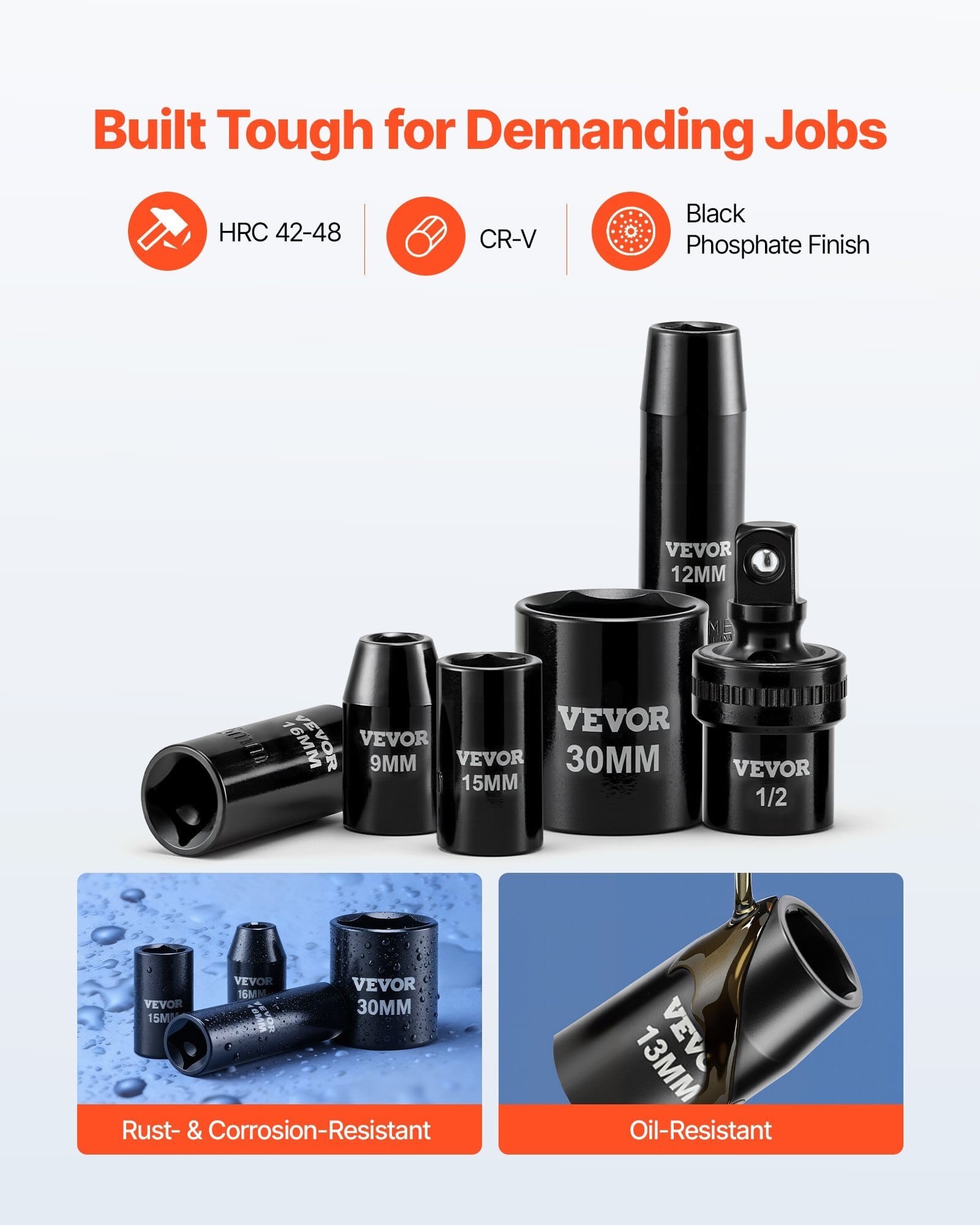 Case Color: Red,Socket Depth: Deep & Shallow ,Socket Quantity: 38Metric Sockets (9-30 mm),Drive System: 1/2 Inch Drive,Number ofPieces: 39 Pieces,Item Model Number: 69300002,Measurement System:Metric,Material: CR-V,Product Dimensions (L x W x H): 13.78 x 9.84x 3.15 in/350 x 250 x 80 mm,Hardness: HRC42-48,Case Material:PE,Net Weight (with all accessories): 14.99 lbs/6.8 kg