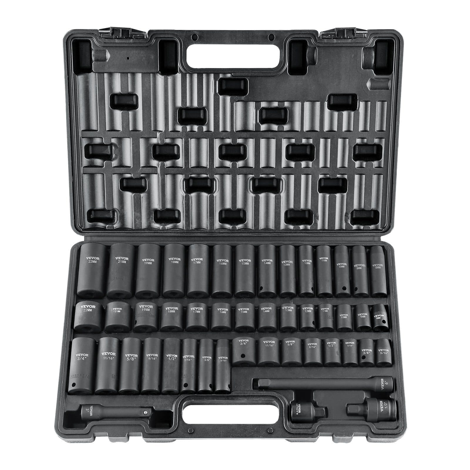 Impact Sockets Set: 48 Pieces,Item Model Number:SS38306548,Material: Cr-V Alloy Steel,Hardness: HRC42-48,NetWeight: 12.35 lbs / 5.6 kg,Product Size: 14.96 x 9.84 x 2.76 in /380 x 250 x 70 mm