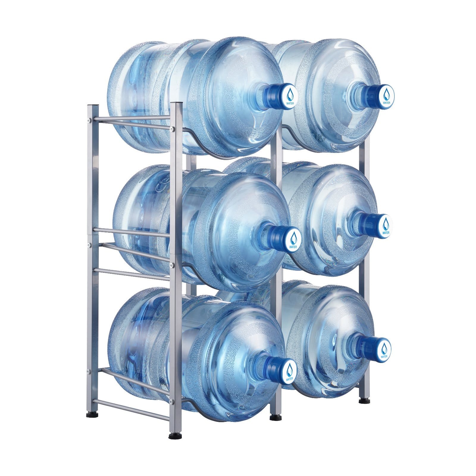 Primary Material: Iron,Number of Rows: Double Row,Capacity: 6Bottles,Number of Tiers: 3 Tiers,Color: Silver,Product Model: 6Water Bottle Rack-S,Product Dimensions: 25.0 × 13.0 × 29.1 in / 636× 330 × 738 mm,Net Weight: 8.60 lbs / 3.90 kg,Overall LoadCapacity: 251.3 lbs / 114 kg
