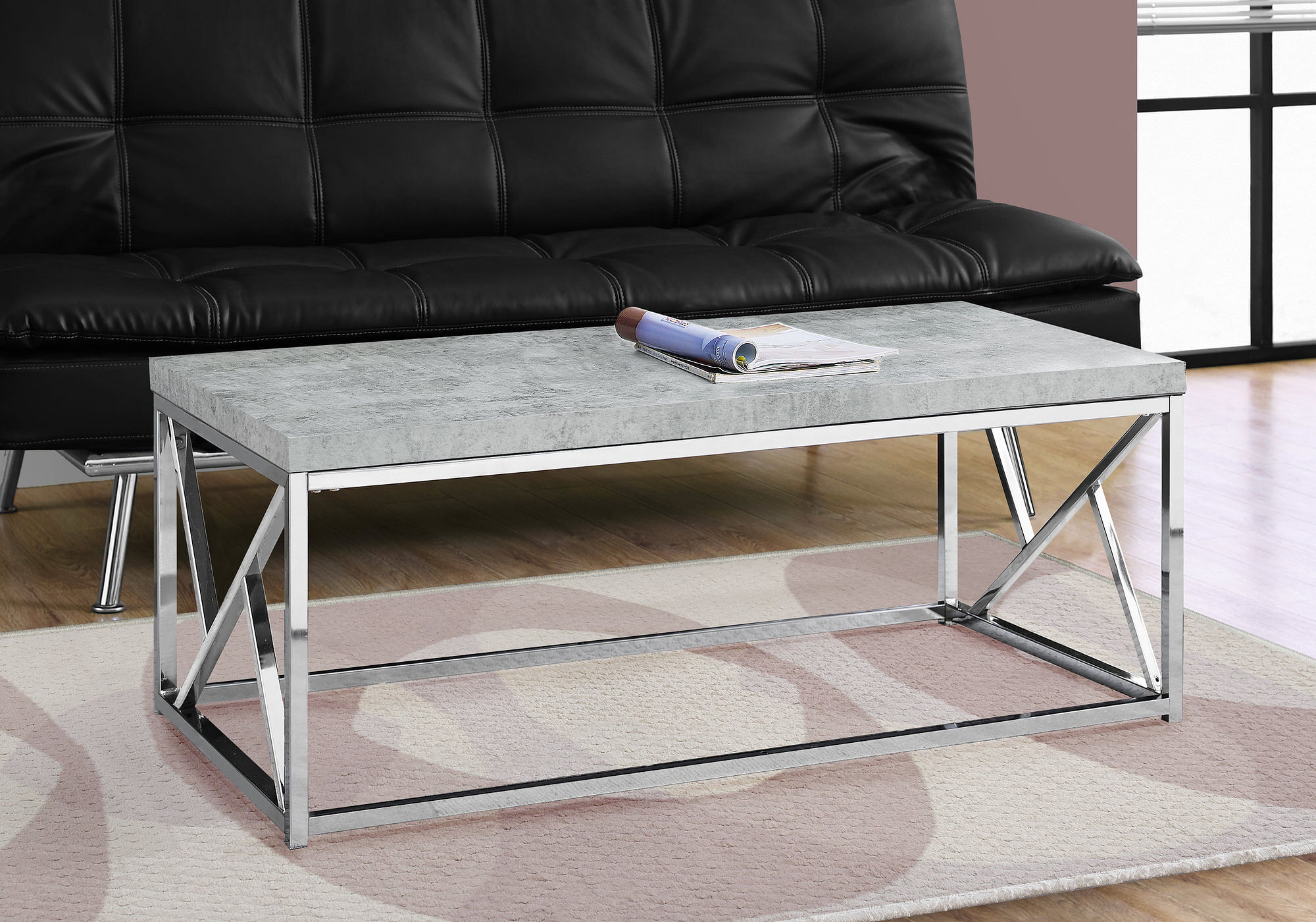 Make your living room or family room really stand out with this 47-inch gray and silver cement and iron coffee table. The silver coloration of the high quality iron base marries nicely with the gray cement top surface. This rectangular table is an classic yet updated way to accent your room. If you're looking for something that can fit into a living area, bedroom, or office, this coffee table is for you. This coffee table is the sturdy, reliable and stylish answer to your living room needs. 17-inch H x 47-inch W x 23.75-inch D