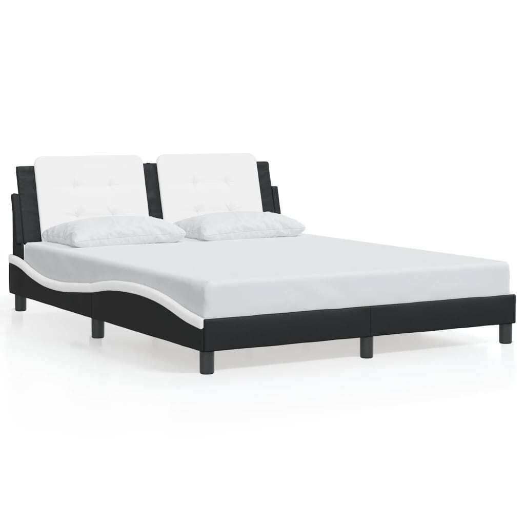This modern bed frame is a perfect blend of style and practicality, making it a great focal point in any bedroom. The striking black and white faux leather cover gives a contemporary vibe that fits in well with different styles, creating a chic and comfy spot for sleep and relaxation.