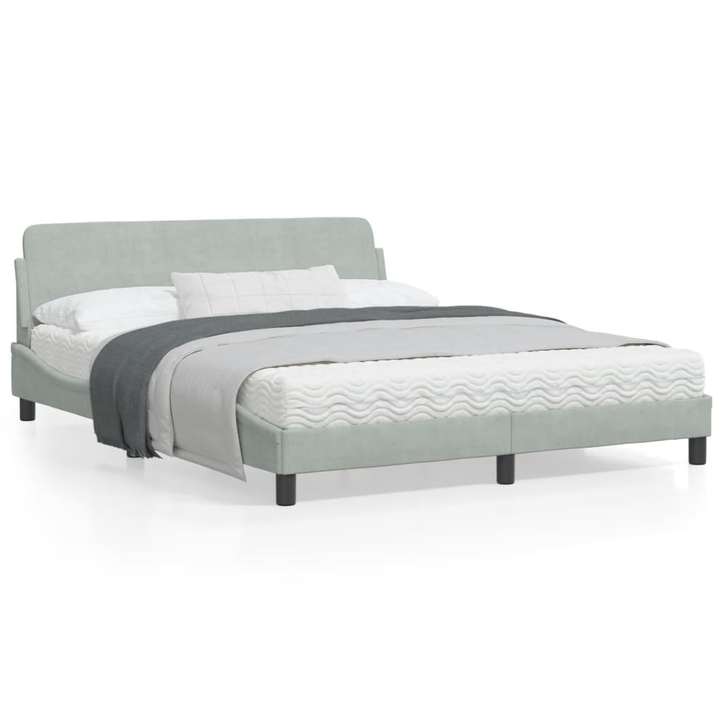 This queen-sized bed frame is all about modern design, with its sleek lines and stylish light grey velvet upholstery. It creates a comfy vibe in any bedroom. The soft touch fabric looks smart and works well with the waved side design, making it both easy on the eyes and practical. It's just right for adults wanting peaceful sleep and chic decor without skimping on comfort.