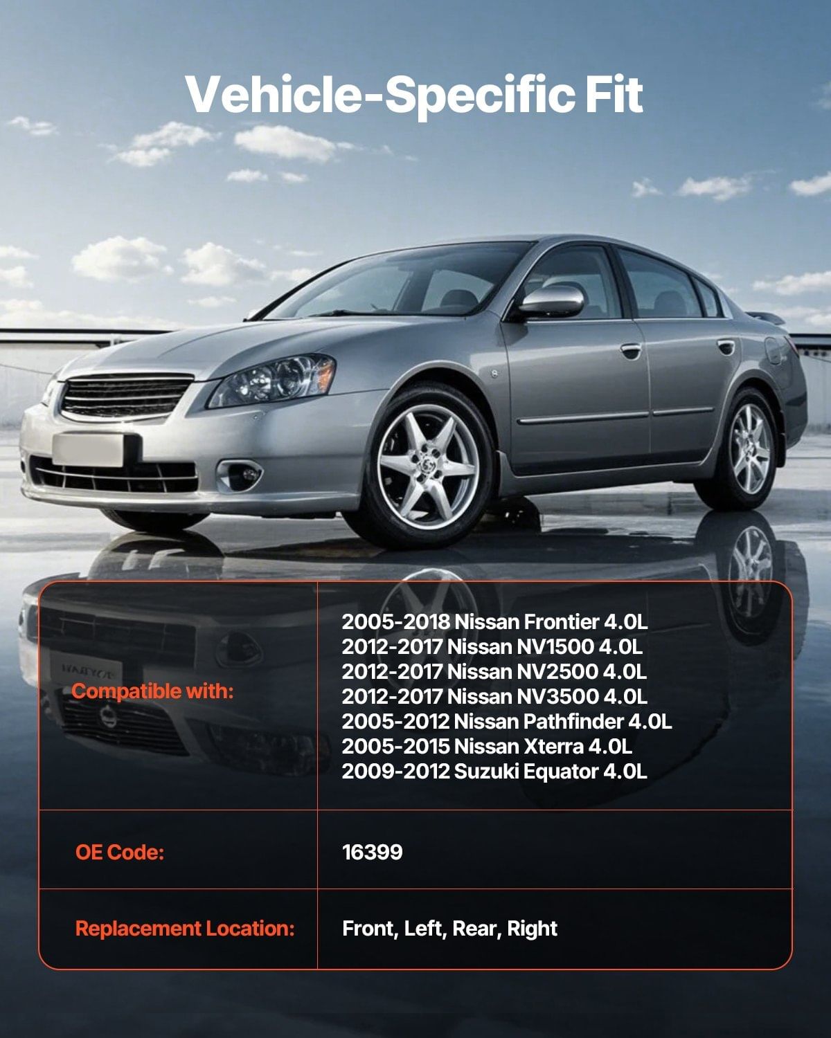 Color: Silver,Item Model Number: FJY-16399,Chambers Quantity:400,Replacement Location: Front, Left, Rear, Right,Net Weight: 20.7lbs / 9.4 kg,Compatible Engine: 4.0L V6