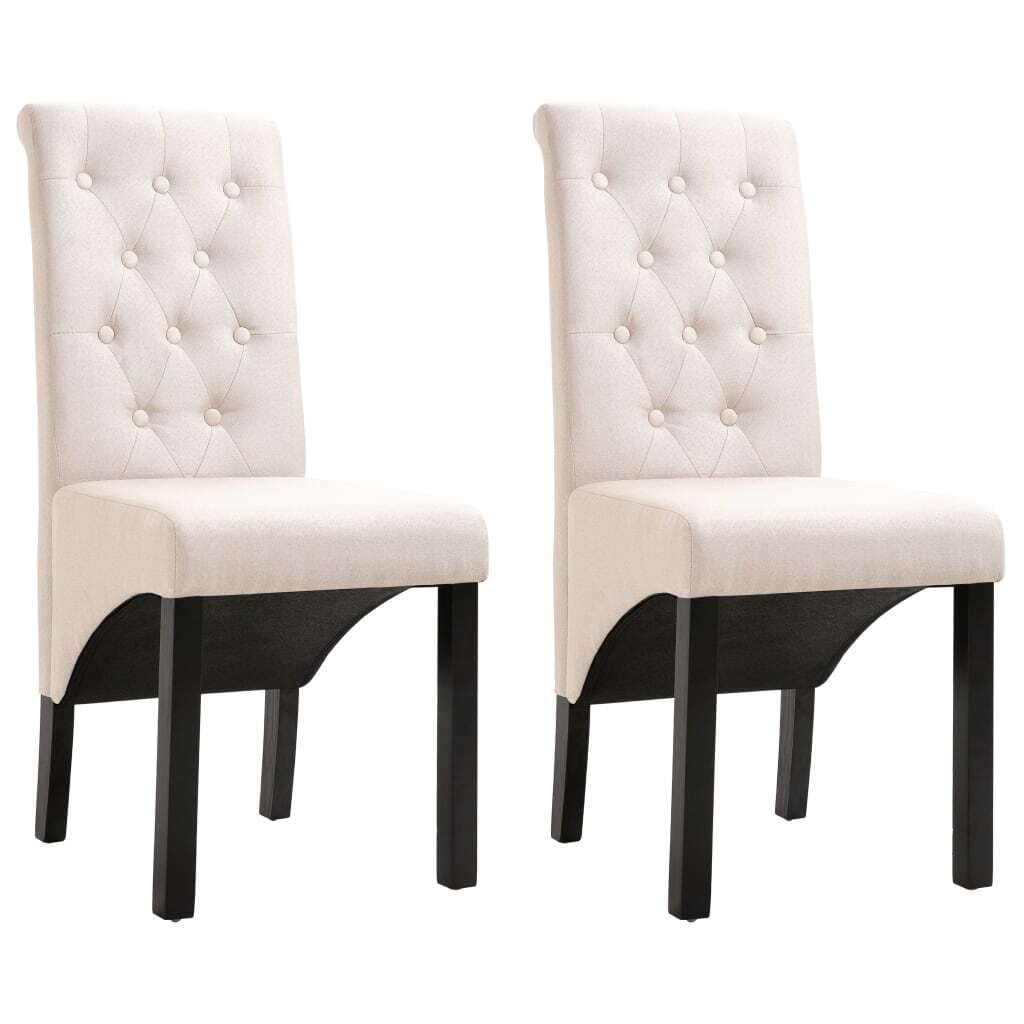 This set of dining chairs combines style and comfort, perfect for giving any dining area a classy touch. With cream fabric upholstery over soft padding, these chairs are made for adults, providing a cozy seating experience during meals or gatherings, making them the ideal choice for family dinners or entertaining friends.
