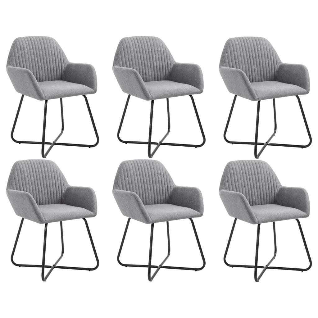 This set of 6 dining chairs has a fresh design that easily upgrades any dining or living space. Made from light grey fabric and a strong powder-coated steel frame, these chairs are not just stylish but built to last while keeping family and friends comfy.