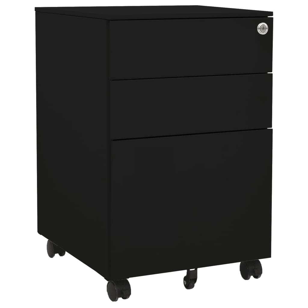 This Mobile File Cabinet is brilliantly designed for easy organization in any office. It has a sleek black finish that's both modern and practical. With its strong build and three handy drawers, you can neatly store all your important documents and supplies, so everything's easy to find when you need it.