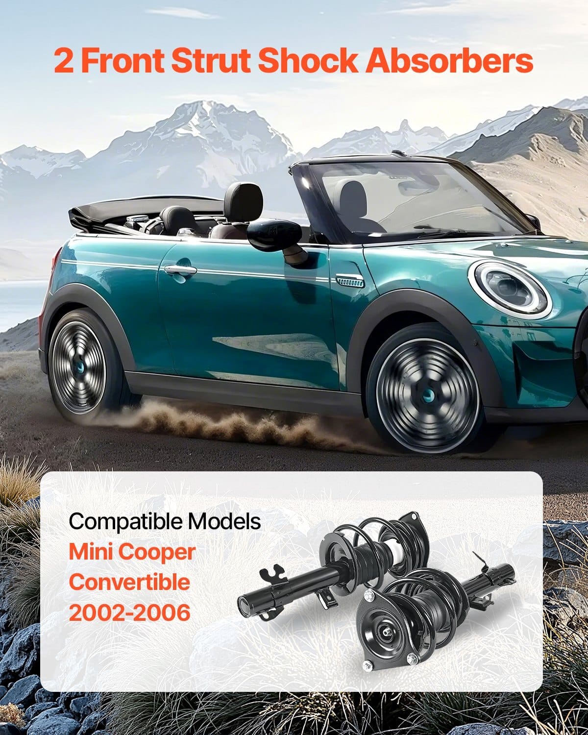 VEVOR Front Shock Absorber Strut Assembly, 2Pcs Shock and StrutAssembly with Coil Spring, Compatible with 2002-2006 Mini CooperConvertible, Automotive Replacement Struts for OE 172265 /172266 Core Component Vehicle Fitment Enhanced Comfort Built to Last Enhanced Safety Direct Installation Item Model Number: SSJ0014,Product Dimensions: 21.26 x 6.73 x 6.73in / 540 x 171 x 171 mm,Net Weight: 28.35 lbs / 12.86 kg