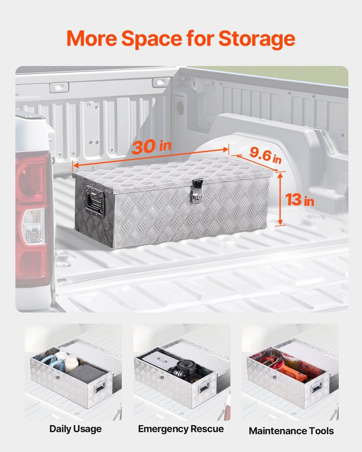 Weight Capacity: 110 lbs / 50 kg,Color: Silver,Item Model Number:SS30-D-S,Product Weight: 11 lbs / 5 kg,Lid Opening Angle:180°,External Size: 30 x 13 x 9.6 in / 762 x 330.2 x 243.84mm,Internal Size: 28.1 x 11.3 x 8.9 in / 714 x 287 x 225 mm,MainMaterial: Aluminum Sheet