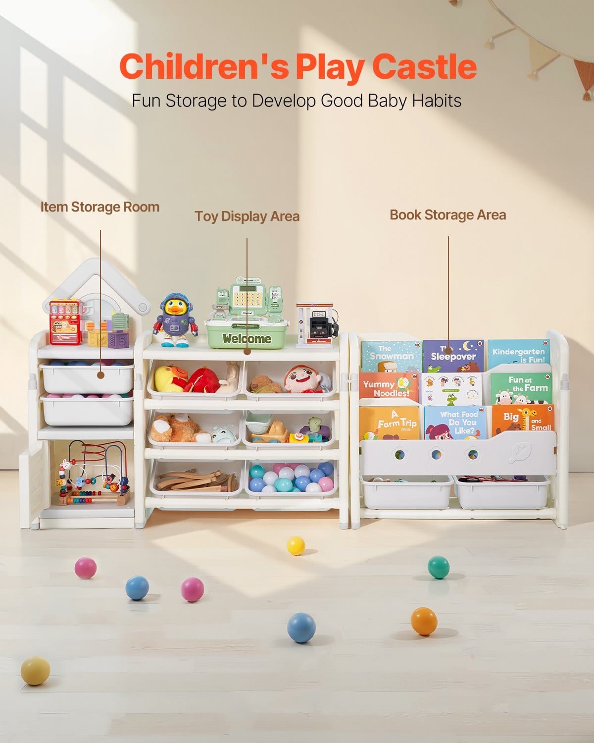 Storage Bin Weight Capacity: 11 lbs / 5 kg each,House Storage RackDimensions: 42.7 x 12.8 x 36.0 in / 108.5 x 32.5 x 91.5cm,Bookshelf Dimensions: 28.7 x 12.8 x 25.8 in / 73 x 32.5 x 65.5cm,Bookshelf Weight Capacity: 11 lbs / 5 kg per shelf,Plastic FrameDimensions: 12.7 x 10.4 x 4 in / 32.3 x 26.5 x 10.1 cm,Books Heldby Bookshelf: 10 per row,Books Held by House: 8-10,Color: Beige +Gray,Material: HDPE,Top Floor Weight Capacity of the House: 22 lbs/ 10 kg,Product Dimensions (180° Expanded): 71.7 x 12.8 x 36.0 in /182 x 32.5 x 91.5 cm,House Frame Dimensions: 15.2 x 12.8 x 36.0 in/ 38.5 x 32.5 x 91.5 cm,Item Model Number: ZHSNG-04,InclinationAngle: 25°,Storage Rack Dimensions: 28.7 x 12.8 x 25.8 in / 73 x32.5 x 65.5 cm,Net Weight: 30 lbs / 13.6 kg,Storage Bin: 11 lbs / 5kg