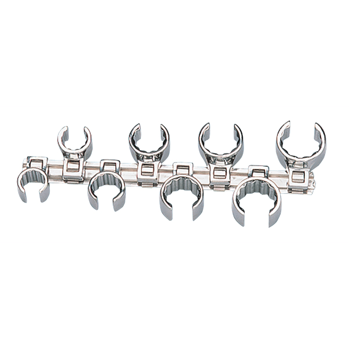 This 8 piece set includes the following sizes: 5/8", 11/16", 3/4", 13/16", 7/8", 15/16", 1", 1-1/16". The flare nut crowfoot wrenches are designed to provide access to the hard to reach fasteners that aren't easily accessible with a conventional wrench. It's made with the strength and durability to last!