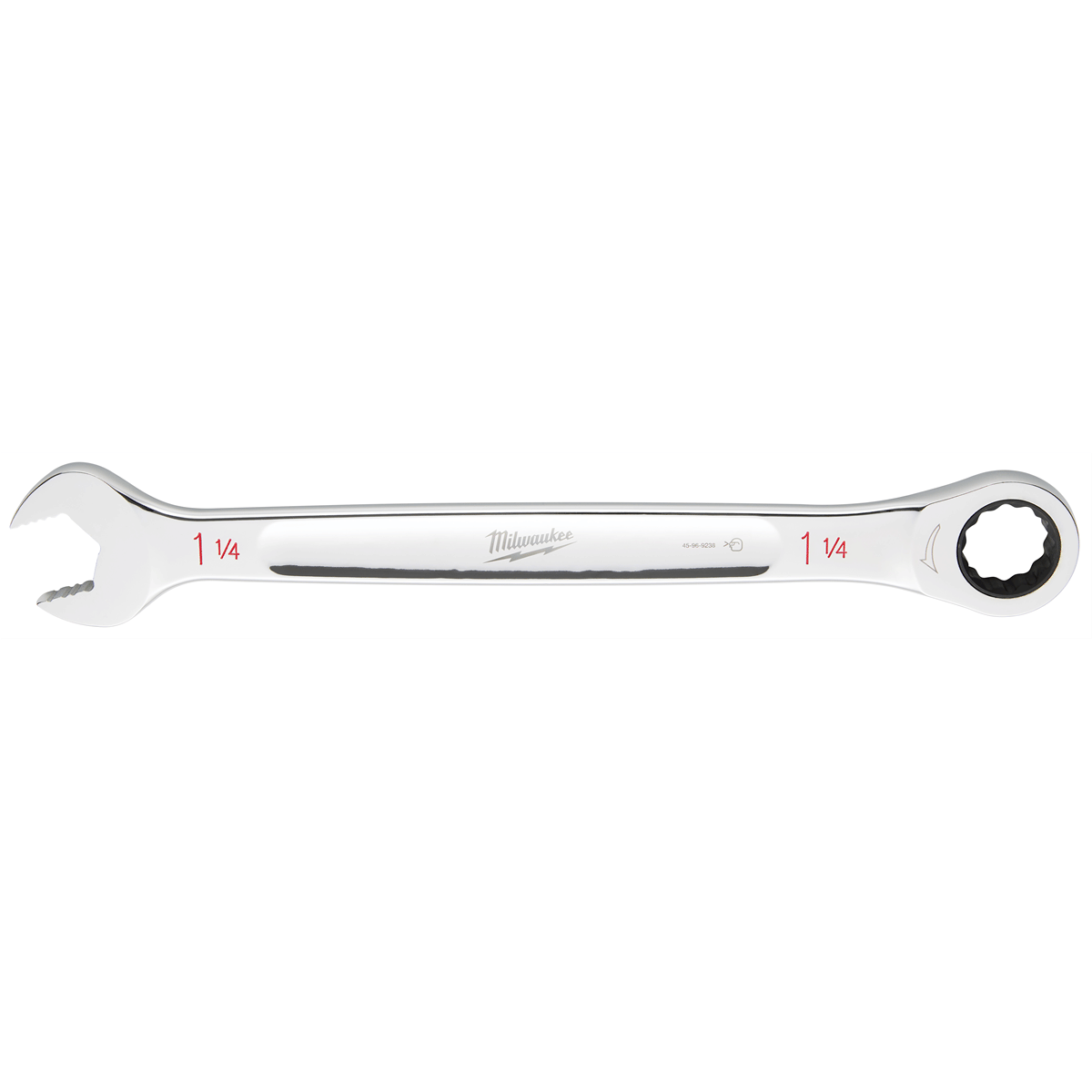 The SAE Ratcheting Combination Wrenches feature 2.5 degrees of arc swing and 144 ratcheting positions, allowing quick and efficient work in tight spaces. Our ratcheting wrench has double-stacked pawls within the ratcheting mechanism, which increases durability and extends the life of the tool. Our MAXBITE Open-End Grip improves the wrench's grip on nuts and bolts, offering 25% more torque than smooth-faced wrenches. The combination wrench features an ergonomic I-Beam handle design for improved comfort and ink-filled size labels for easy size identification and quick distinction between SAE and metric sets. The MILWAUKEE SAE wrench sizes range from 1/4" to 1-1/4" and are backed by our Lifetime Guarantee.