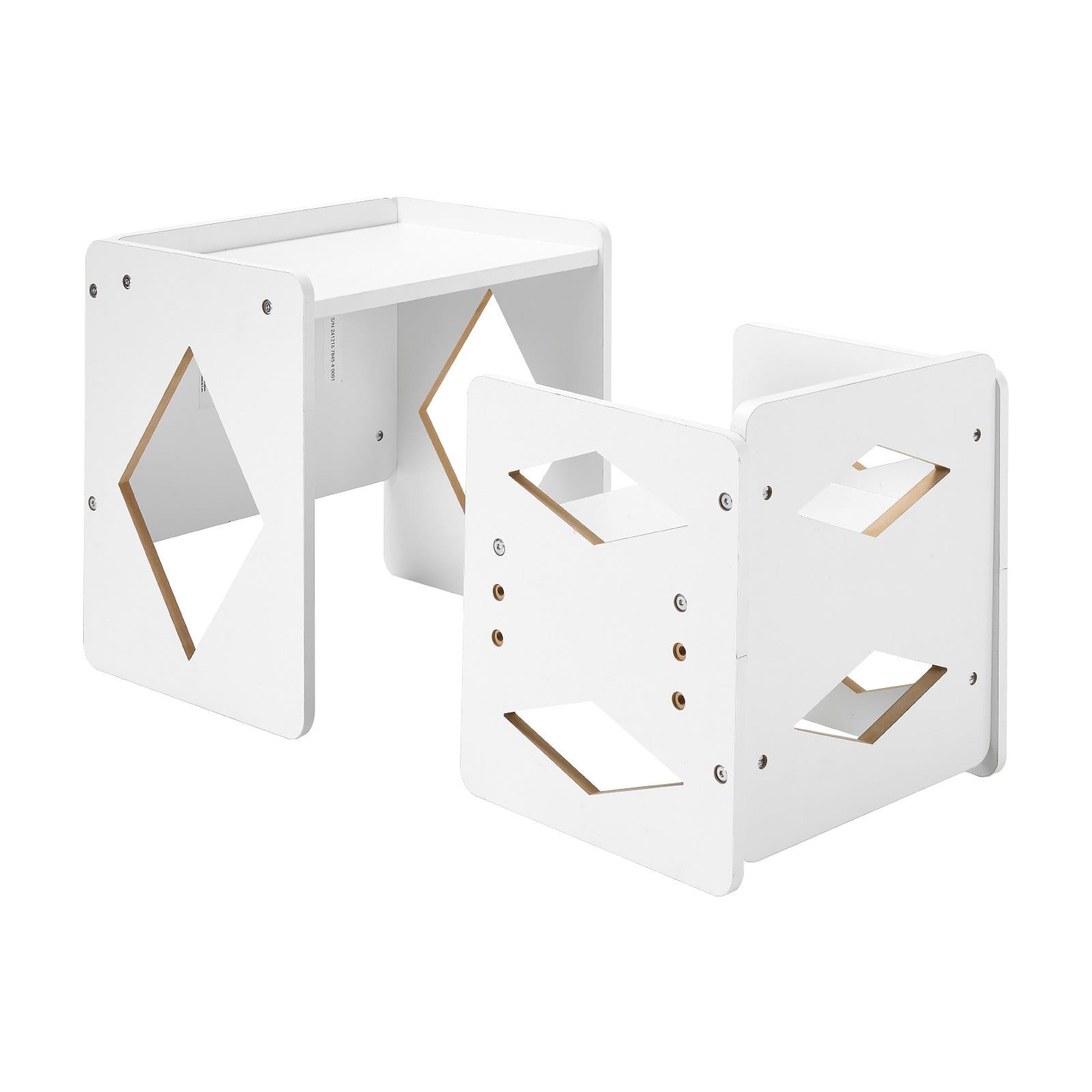 Table: 15.4 x 12 x 15 in / 392 x 300 x 381 mm,With BeautifulPattern: Yes,Chair: 13.1 x 11.2 x 13.6 in / 332 x 285 x 345mm,Color: White,Item Model Number: SYD04,Product Weight: 14.8 lbs /6.7 kg,Style: One Table One Chair,Adjustable: 3-leveladjustment,Main Material: MDF