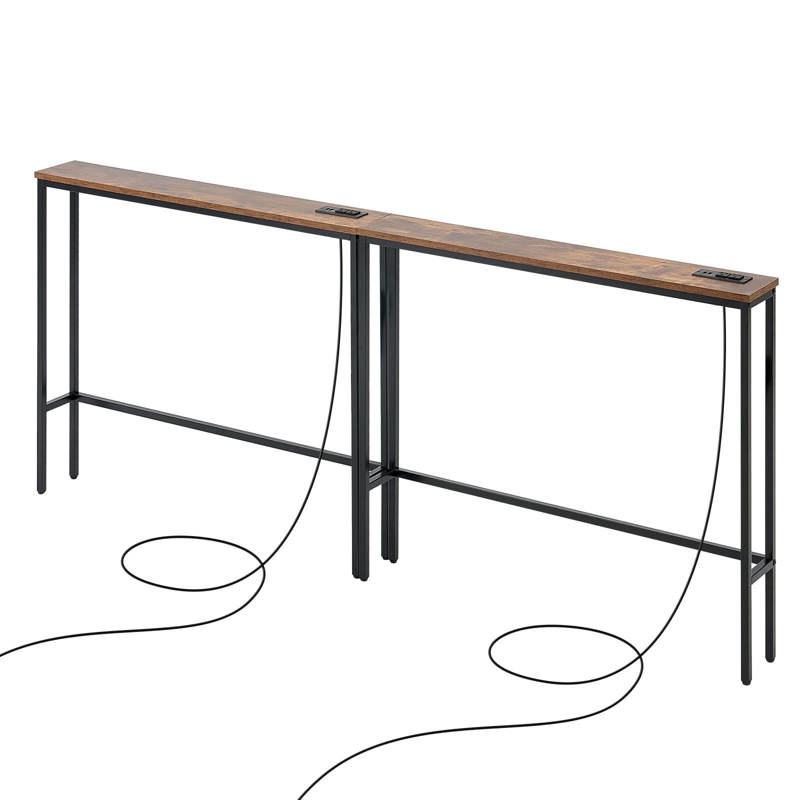 Number of Layers: 1 layer,Color: Brown + Black,Quantity: Set of2,Frame Square Tube Size: 0.7 x 0.7 x 0.03 in / 18 x 18 x 0.8mm,Socket Configuration: 2 Three-prong sockets + 2 USBsockets,Shelf Material: MDF with melamine veneer,Product Size: 78.7x 5.9 x 31.4 in / 200 x 15 x 80 cm (2 pieces),Power Cord Length:70.1 in / 178 cm,Weight Capacity: 100 lbs / 45.3 kg,ShelfDimensions: 39.4 x 5.9 x 0.6 in / 100 x 15 x 1.5 cm,Foot Pads:Adjustable foot pads,Item Model Number: YJXXGZ-002,Frame Material:Carbon steel square tube,Net Weight: 19.8 lbs / 9 kg