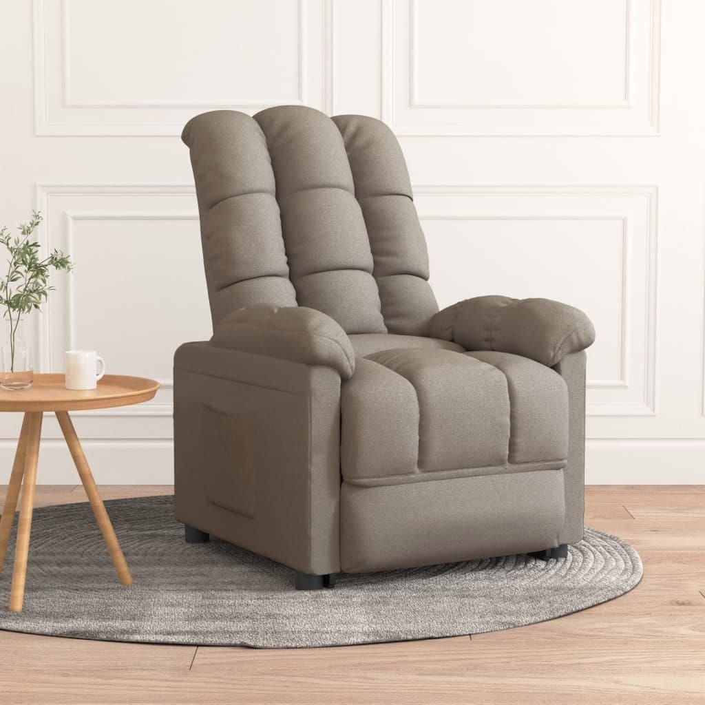 This recliner chair is all about comfort and style, making it a fab addition to any living room or home theater. With its soft taupe fabric and clever design, it's perfect for kicking back and enjoying a good book or a movie.