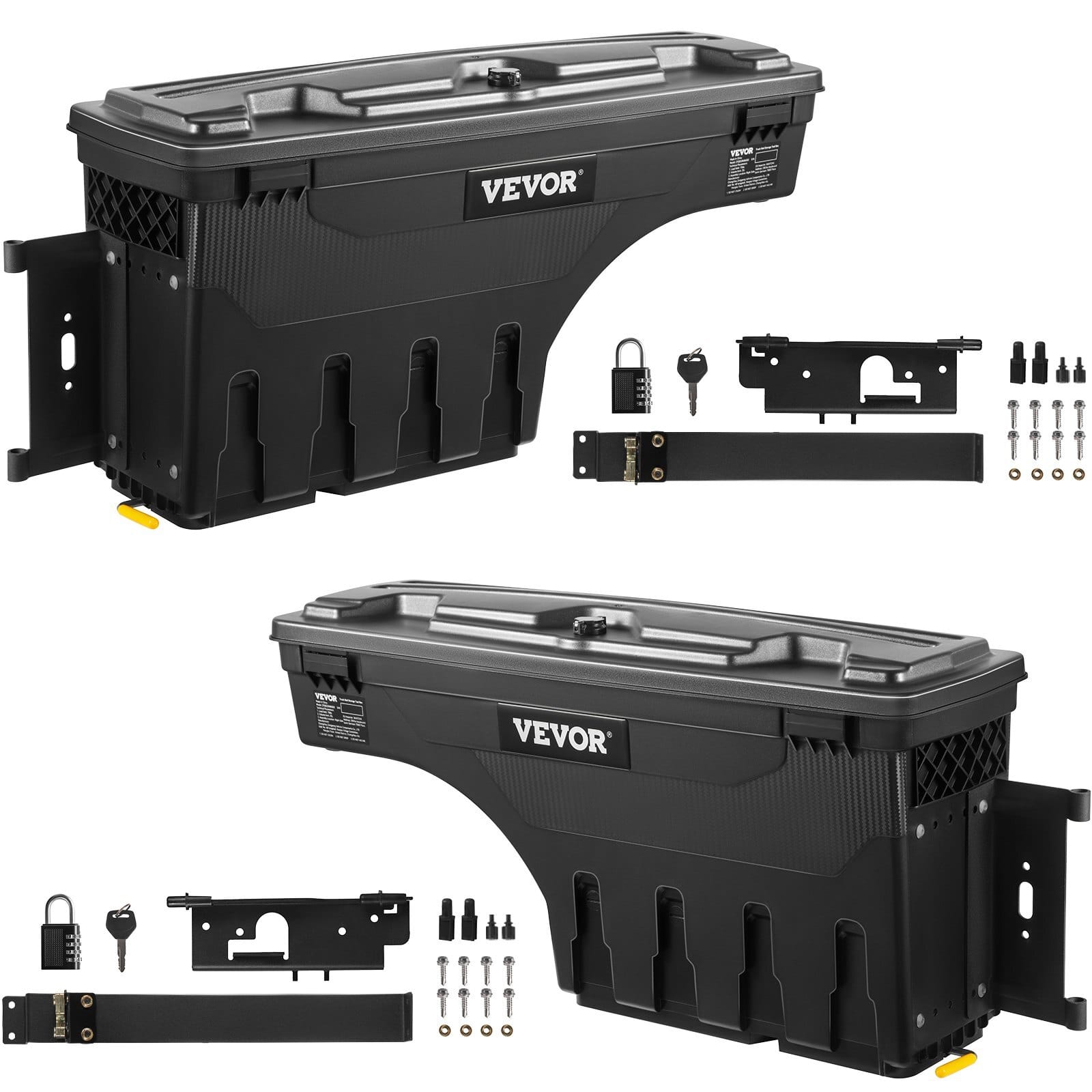 Compatible with: Dodge Ram 1500 2019-2021 R & L,Max Load: 75 lbs/34kg,Max Capacity: 6.6 Gal/25 L,Color: Black (matte),Product Weight:11 lbs/5 kg (Net); 19.8 lbs/9.0 kg (Gross),Main Material: ABS &Carbon Steel,Package Size: 36.4x11x16.7 in/925x280x425 mm